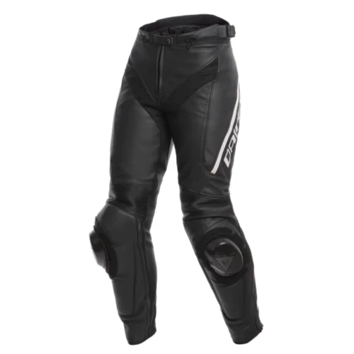 Sports pants designed for agile comfort with our new Corsa knee sliders and and designed to match Dainese’s sport jacket range. Hip adjusters and S1 fabric with elasticated inserts ensure great fit and flexibility. While Tutu leather with perforated cooling zones (perforated version only) provides tough abrasion resistance: impacts protection is provided by certified hips and knees protectors. Included Pista knee sliders and suit-to-boot fastening system, complete a performance package with distinctive Dainese style in dedicated models for men and women.