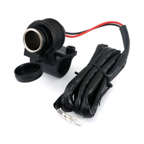 Power Point / Cigarette lighter receptable. 12V with 5V 2Amp output and 120cm wiring. Clamps to both 7/8" (22mm) and 1" (24.4mm) handlebars.