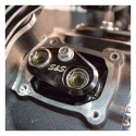 Black hard anodized aluminum construction, sold in a set of 2. Stock tappet guides / anti-rotation devices are made of plastic and could allow tappets to twist in heavy stress, high RPM situations. These S&S tappet cuffs are precision CNC machined from billet aluminum that is black hard anodized. They offer superior strength, stability and perfect alignment in all circumstances without obstructing the vertical tappet movement in any way. Individually marked for front or rear use. An easy performance upgrade when doing a tappet or cam change. This set is an upgrade for the OEM 17900035 & 17900034 'anti-rotation devices'. Note: Due to variations between cam and tappet manufacturers, be sure to check tappet to tappet cuff clearance.