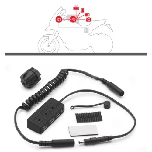 Strømtilkobling for USB med gjennomføring for tankveske