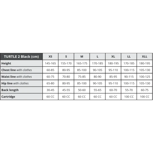 Turtle 2 er en videreutvikling av Turtle vesten som kom for fire år siden. Helite har her tatt designet et skritt videre, nytt på Turtle 2 er blant annet at CO2 patronen sitter nå inne i en borrelås lomme samt at det er sydd på en neopren krage for å unngå gnag på halsen. Turtle 2 har også en liten glidelås lomme på benstre side foran.